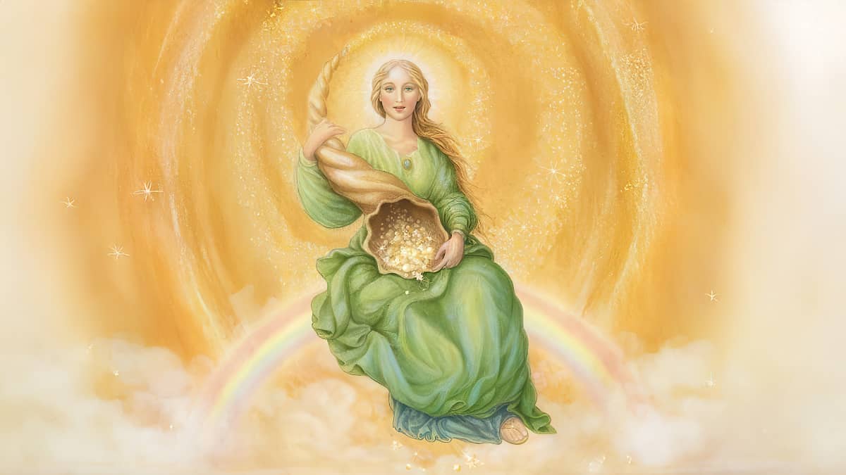 The real Fortuna, the Goddess of Good Fortune, is radiant like the sun. This cosmic being teaches that abundance is never a matter of chance, but a manifestation of the unerring law of harmony. Precipitation is a science based on the immutable law, “As you sow, so shall you reap”—as you sow harmony, you reap supply. She teaches the wisdom of the Christ who said, “I AM come that ye might have life, and that more abundantly.”